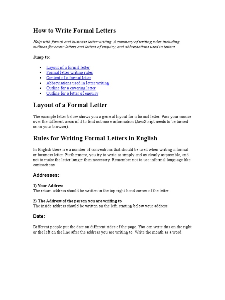 The receiver’s address comes next. Always start with the sender’s address this is followed by the date. To write a formal letter, there are some points to be remembered.